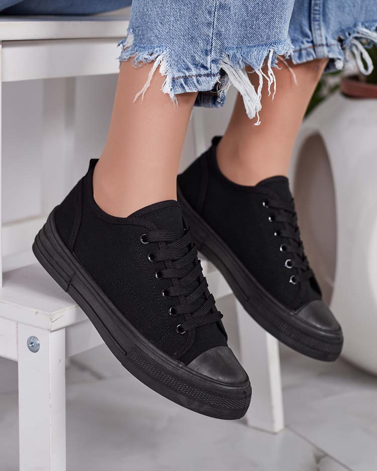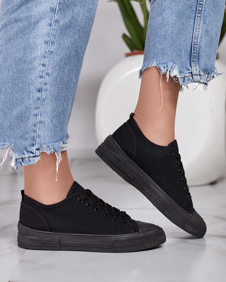• Baskets classiques à lacets pour femme sur une semelle plate. La tige ainsi que la semelle intérieure sont en tissu. Superbe complément à vos tenues décontractées !