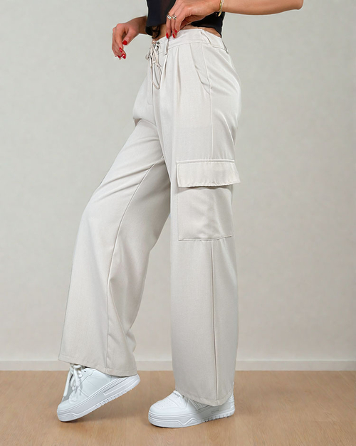 - Phénoménal pantalon large en tissu léger, le modèle a une bande élastique et un pantalon à la taille. En outre, deux poches sur les côtés. Un hit de cette saison ! NOTE : Précision des mesures (+/-) 1 cm.