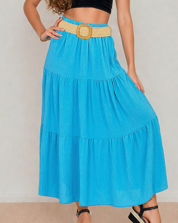 - Jupe midi pour femme intemporelle. Le modèle est doté d'une ceinture élastique qui souligne parfaitement la taille. De plus, une ceinture tressée est incluse. Cette jupe est un excellent accent pour votre look de tous les jours !