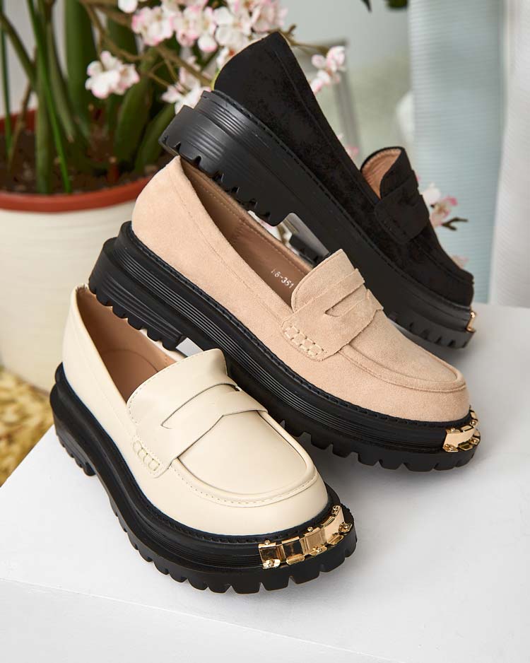 - Mocassins pour femmes exceptionnels avec une semelle épaisse, fabriqués en cuir écologique suédé et une semelle intérieure en cuir écologique. Ils ajouteront du style à toutes les tenues !