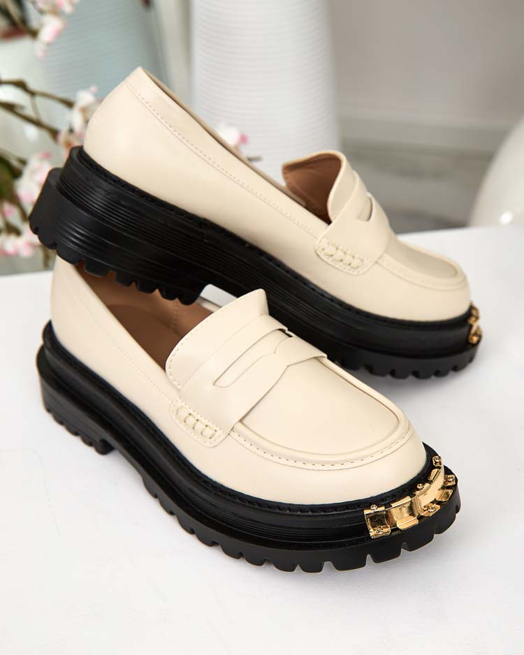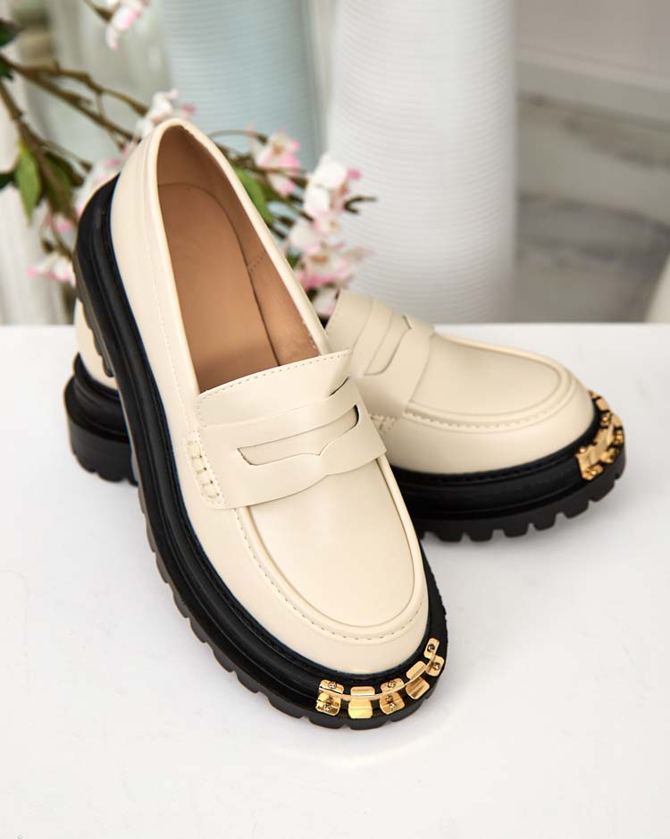 Mocassins pour Femmes Aurelia Beige à Plateforme de 5cm - Élégants et Confortables