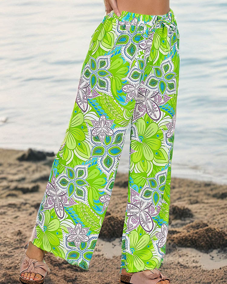 - Pantalon large à motifs en tissu léger, le modèle a une taille élastique. A avoir absolument dans sa garde-robe ! NOTE : précision des mesures (+/-) 1 cm.