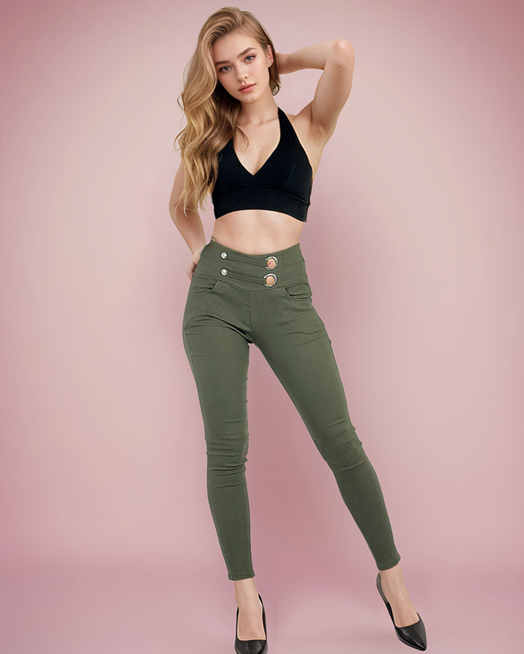 - Pantalon teggings intemporel pour femme, en tissu extensible. Le modèle a une taille haute, une large ceinture élastique et 2 poches à glissière à l'avant et à l'arrière. Parfait pour tous les jours !