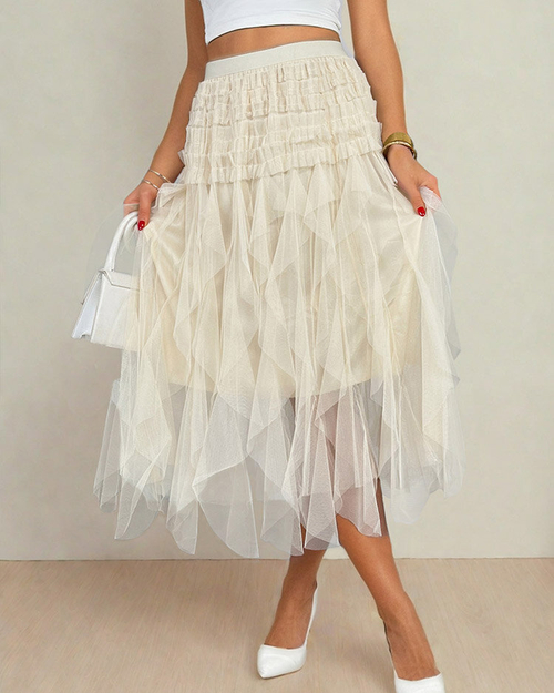 - Jupe midi double épaisseur pour femme intemporelle. Le modèle est doté d'une ceinture élastique qui souligne parfaitement la taille. Cette jupe est un excellent accent pour votre look de tous les jours !
