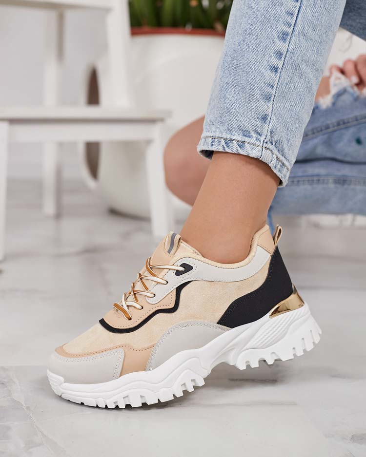 - Baskets pour femmes à semelle plate - la combinaison parfaite du style et du confort. Chaussures en nubuck écologique, cuir écologique et daim écologique. Modèle à lacets, semelle intérieure en tissu. Idéal pour les personnes actives !