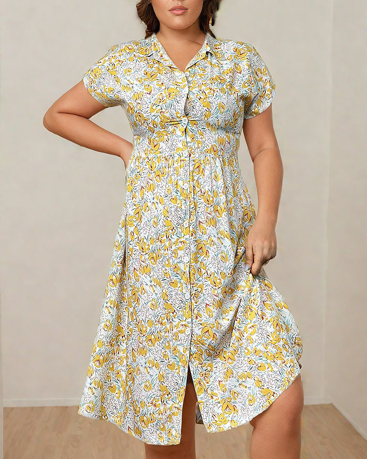 - Une robe unique pour femme en tissu léger avec un motif floral. Elle a un col et est boutonnée. Le produit est de longueur midi et a des manches longues. Sentez l'été dans ce modèle !