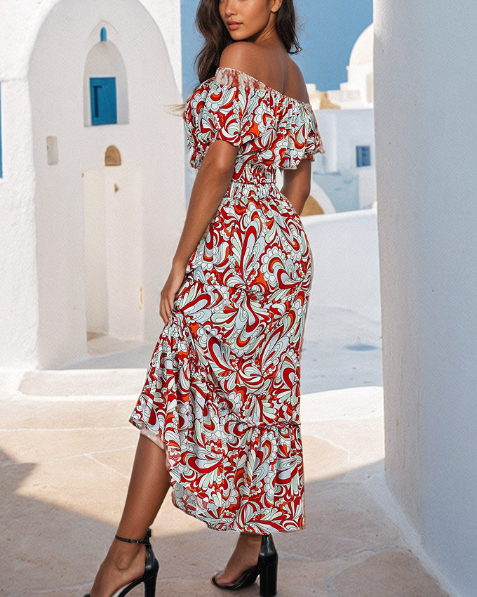 - Ensemble à motifs pour femmes en été, en tissu agréable et léger. Le haut court de style espagnol a une encolure ronde et une taille élastique. La jupe longue a une ceinture élastique et des volants décoratifs. NOTE : Précision des mesures (+/-) 1 cm.