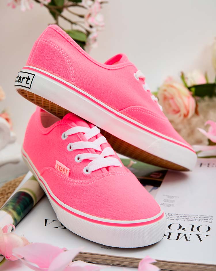 - Chaussures de sport légères pour femme, style baskets sur semelle plate. Dessus lacé en tissu. Semelle intérieure en tissu. Idéales pour les promenades estivales !