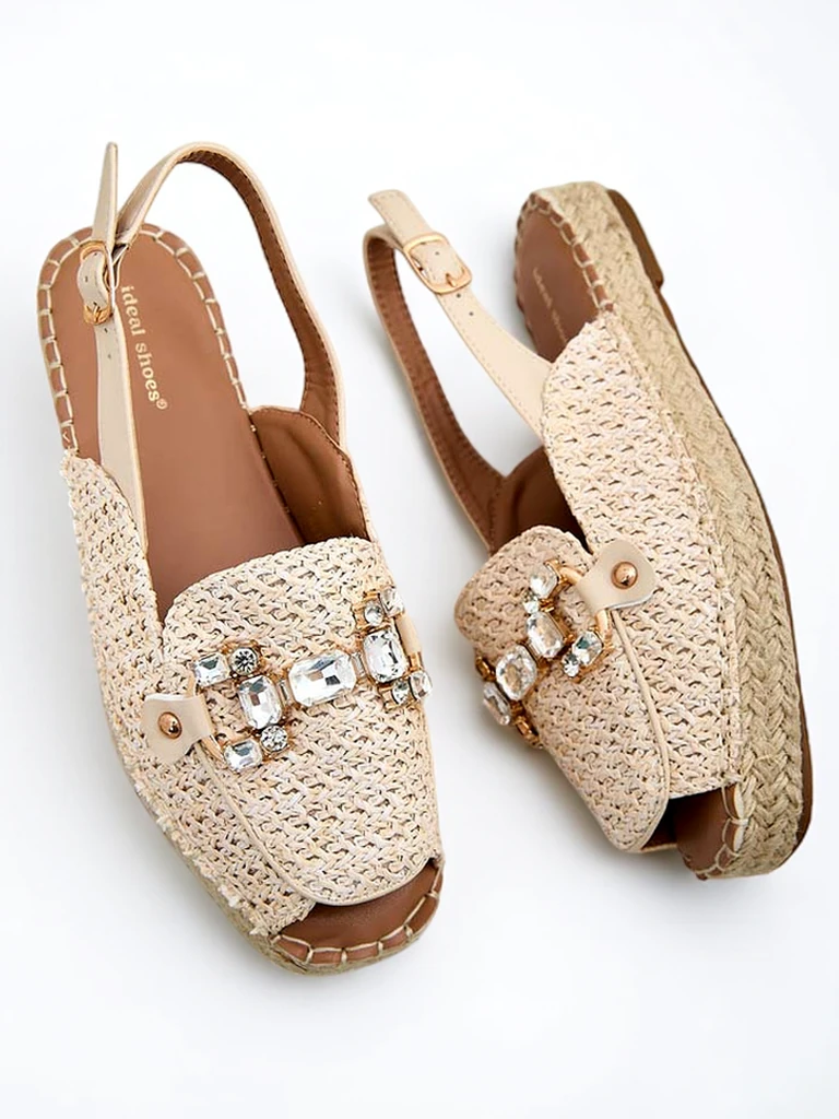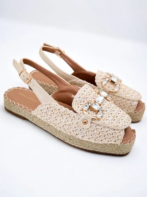• Espadrilles pour femmes uniques en matière synthétique. La semelle plate décorée d'un cordon de jute assure le confort. Modèle à enfiler avec bride en cuir et orteils apparents. Un complément parfait aux tenues d'été !