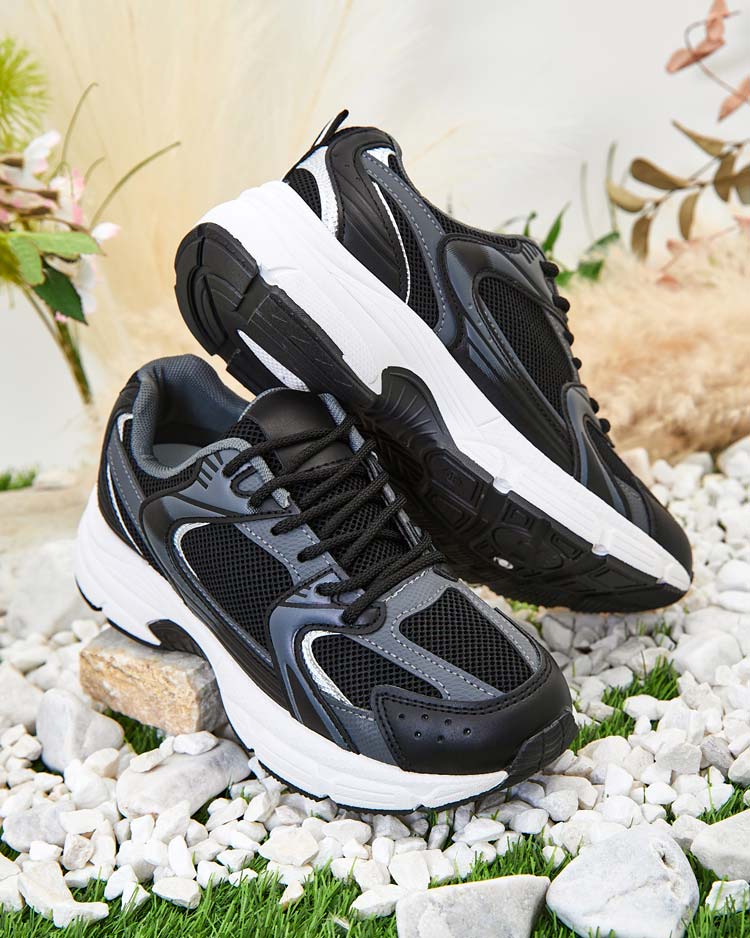 - Baskets pour femme à semelle plate - la combinaison parfaite du style et du confort. Chaussures en cuir écologique et en maille. Modèle à lacets, semelle intérieure en tissu. Idéal pour les personnes actives !