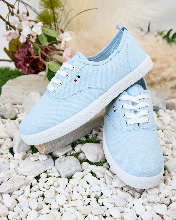 • Chaussures de sport légères pour femme, style baskets, sur une semelle plate. Empeigne à lacets en tissu. Semelle intérieure en tissu. Idéales pour les promenades estivales !