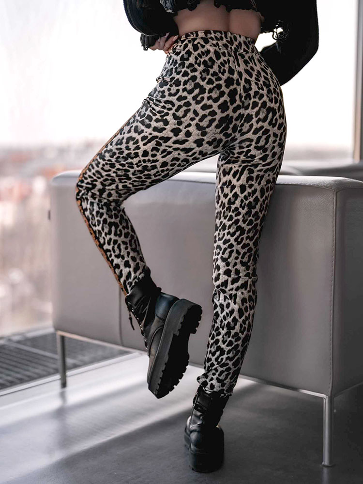 - Leggings élégants en tissu extensible. Large ceinture élastique pour un meilleur confort. Le tout décoré d'un imprimé animalier et de zircons. Parfait pour créer des tenues élégantes !
