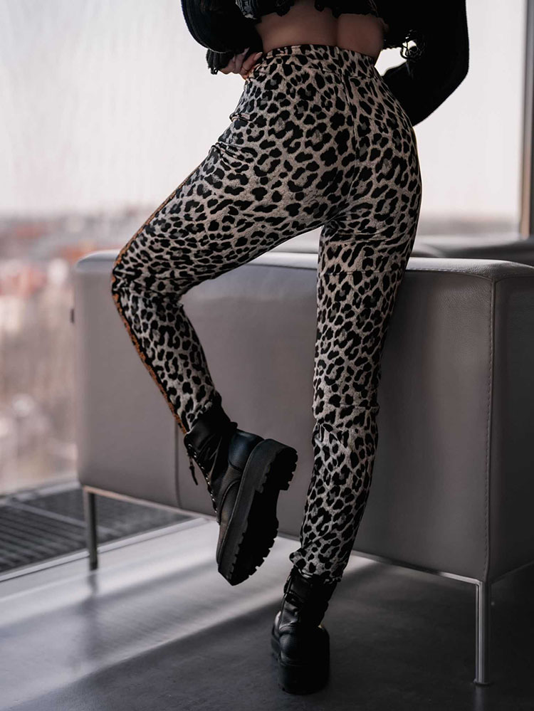 - Leggings élégants en tissu extensible. Large ceinture élastique pour un meilleur confort. Le tout décoré d'un imprimé animalier et de zircons. Parfait pour créer des tenues élégantes !
