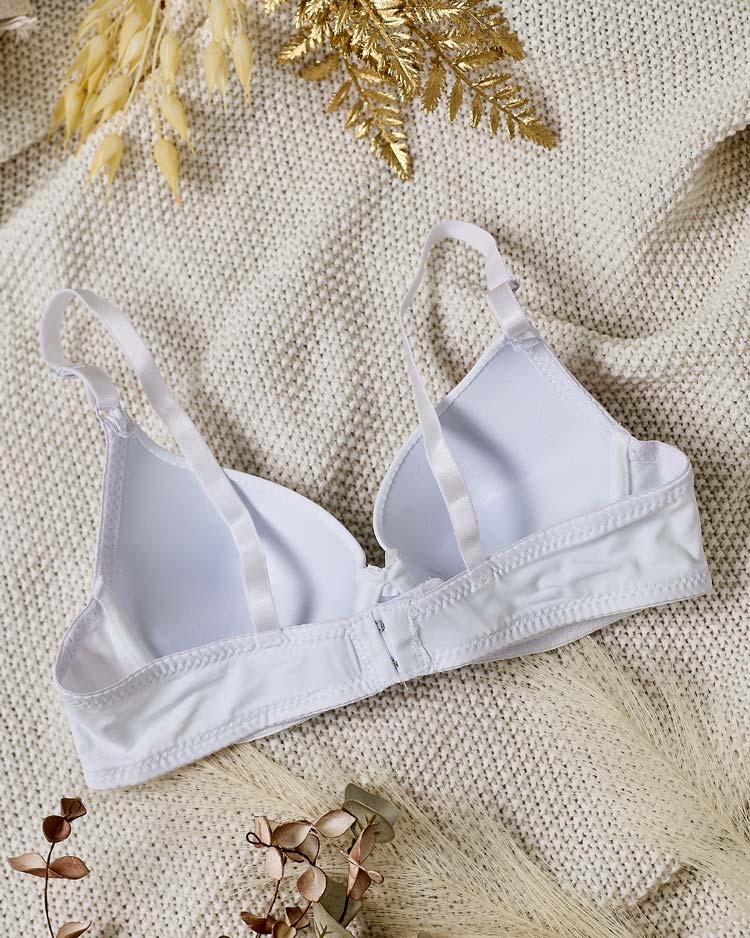 • Soutien-gorge lisse pour femme unique en son genre, le produit se ferme au dos par une fermeture auto-agrippante en deux temps. Les bretelles sont réglables en longueur. Entre les bonnets, un nœud subtil. NOTE : Précision des mesures (+/-) 1 cm.