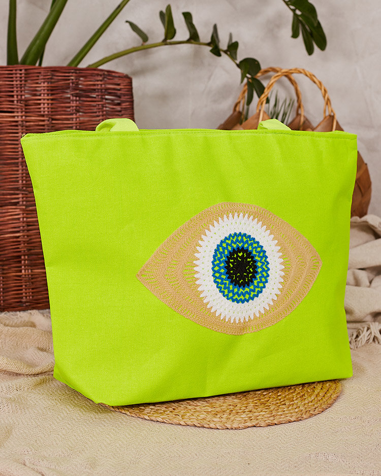 - Grand sac pour femme, en tissu avec motif brodé. Le modèle a 1 compartiment, 1 compartiment intérieur et est zippé. Parfait pour tous les jours ou pour la plage !