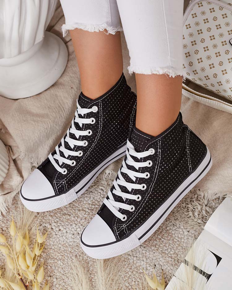• Chaussures à semelle plate pour femme. La paire de style décontracté est fabriquée en tissu avec des finitions ajourées, semelle intérieure en tissu. Parfaites pour celles qui apprécient le confort !