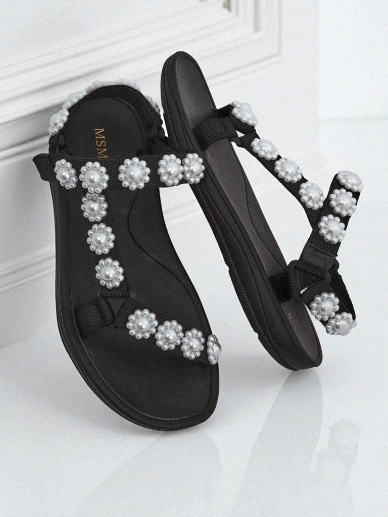 Sandales pour femmes Royalfashion Perseida noires à plateforme avec des perles