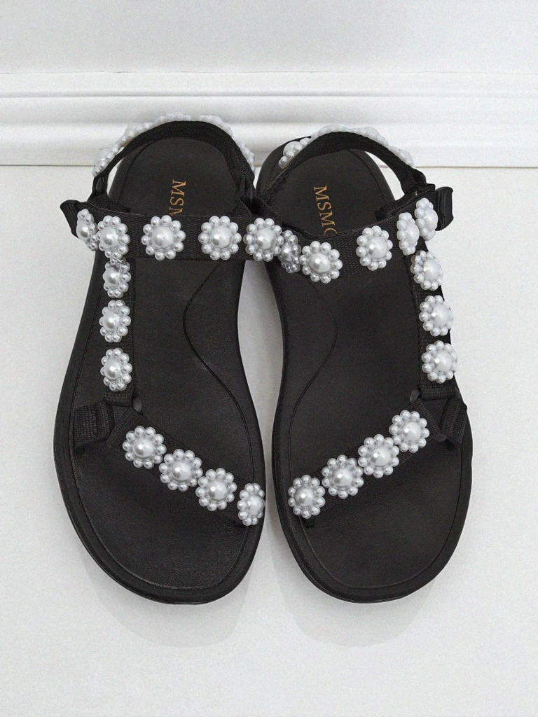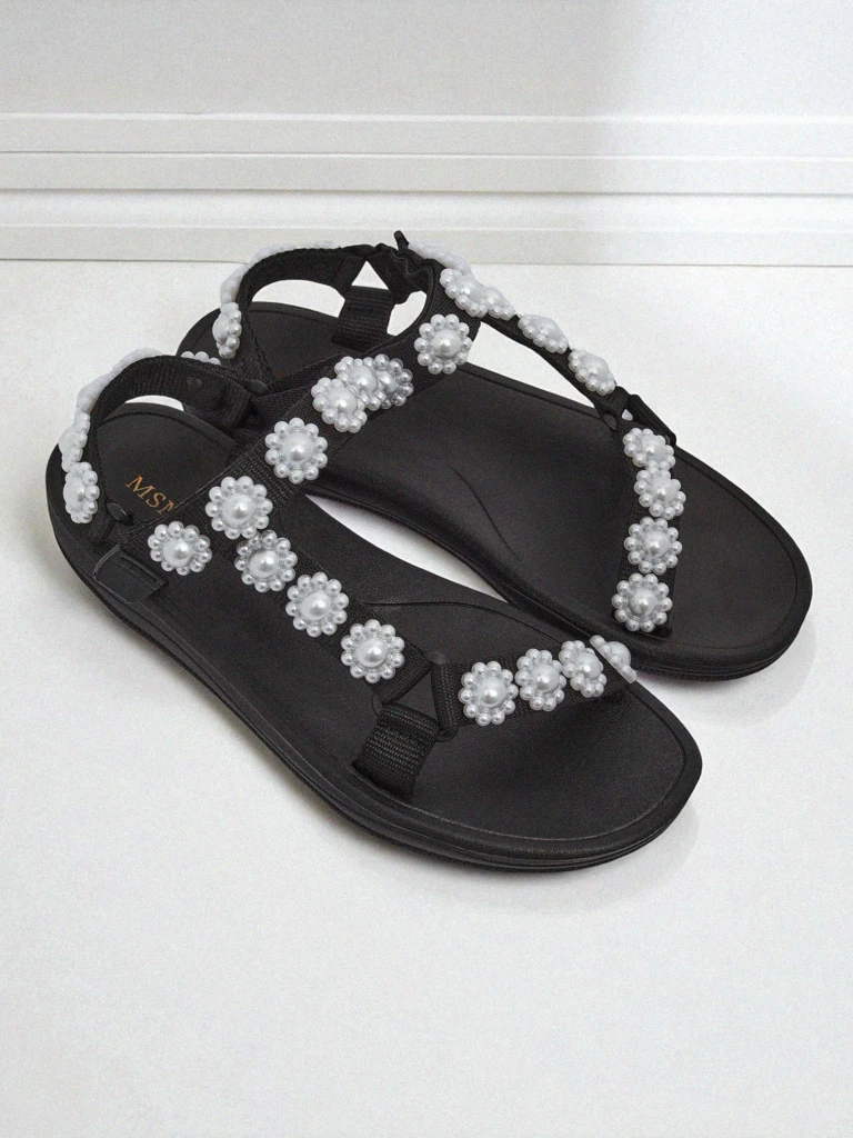 - Sandales de sport pour femmes à semelles plates, avec des brides en tissu ornées de délicates fleurs et une semelle intérieure en cuir écologique. Ces chaussures pour femmes se ferment avec du velcro. Elles adhèrent bien au pied !