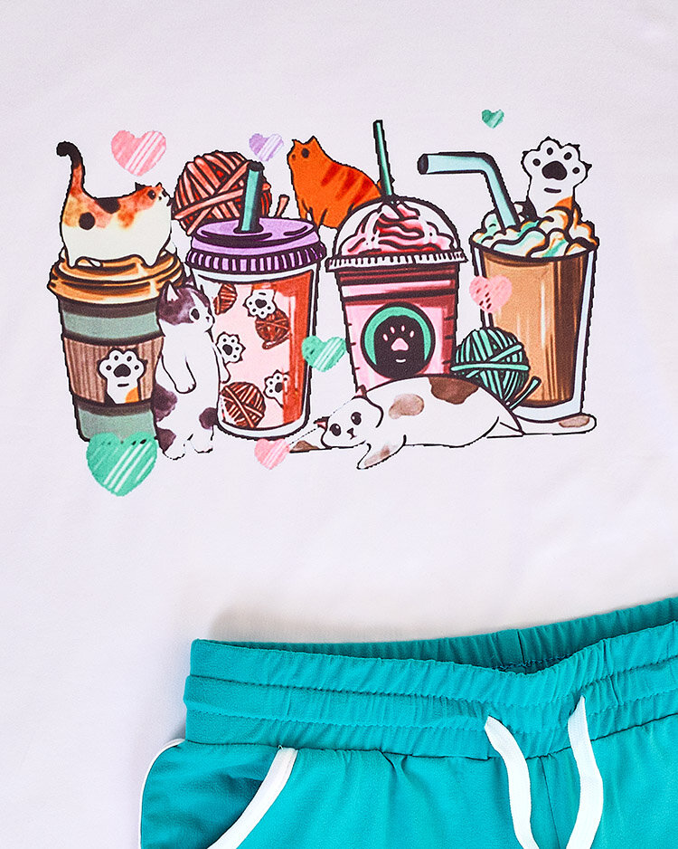 - Ensemble pour femmes en matière agréable. Le modèle a un imprimé décoratif. Chemisier à manches courtes et short à taille élastique. Sentez l'été dans cet ensemble magnifique !