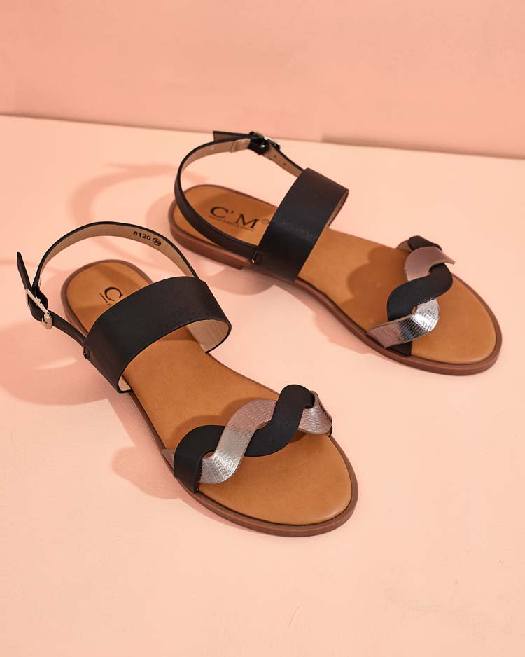 • Sandales Mega élégantes pour femme sur une semelle plate. Les chaussures sont fermées par une boucle et sont fabriquées en cuir écologique. Superbe complément à vos tenues décontractées !