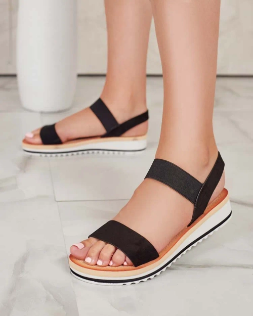 - Sandales à semelle plate pour femme - idéales pour les chaudes journées d'été. Les brides sont en cuir suédé biologique, tandis que la semelle intérieure est en mousse agréable. L'avant est décoré de rayures élégantes, et une bride entoure la cheville.