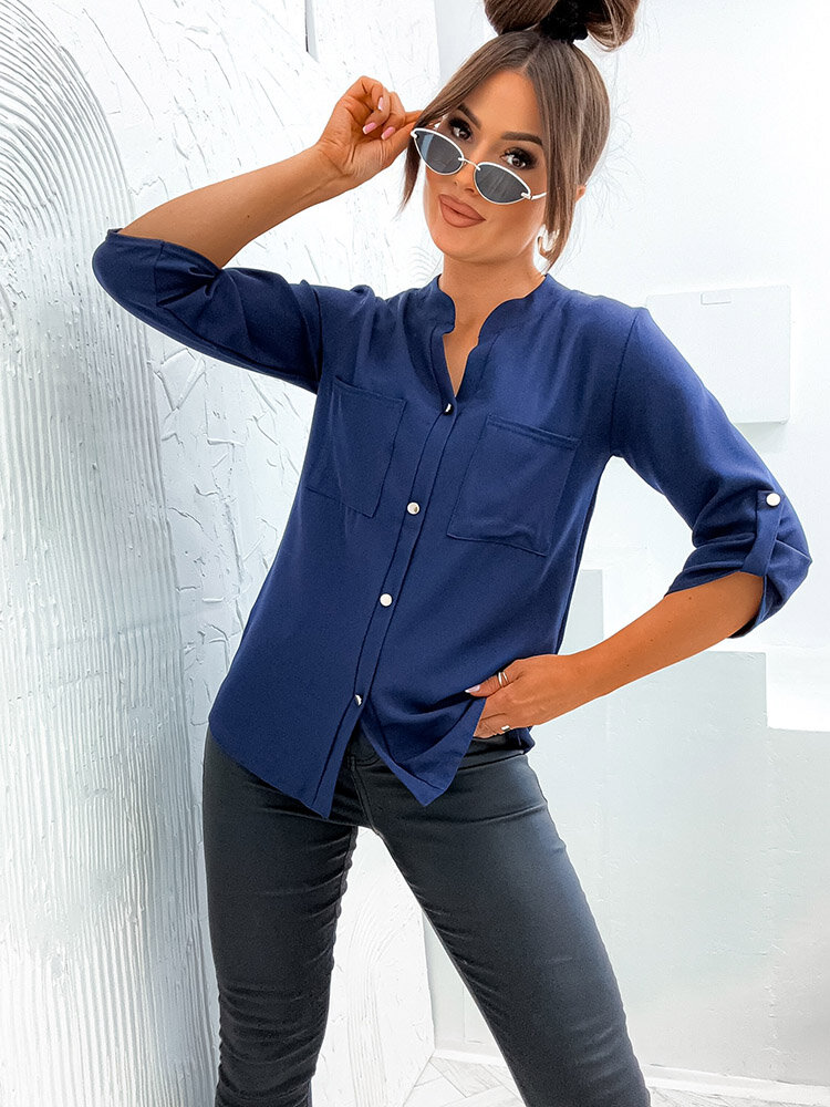 - Chemisier classique pour femme à la chemise avec manches longues et retroussées. Le modèle à col est boutonné. Indispensable dans l'armoire de chaque femme !