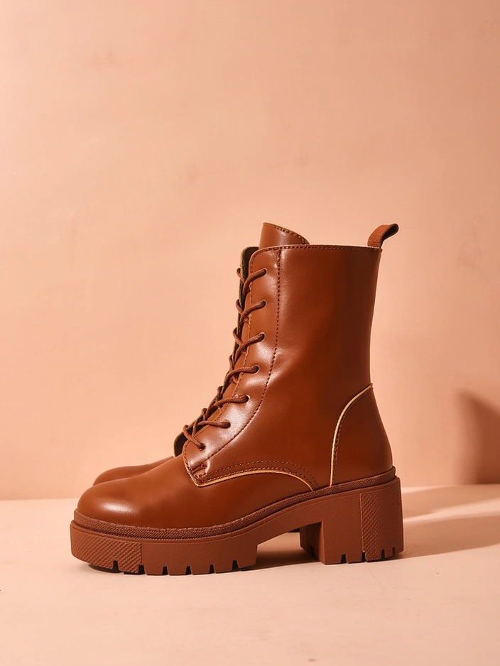 • Bottes pour femme en cuir écologique. L'intérieur du modèle est doté d'une semelle intérieure en tissu. Chaussures à lacets et à fermeture éclair. Super complément à vos tenues d'automne !