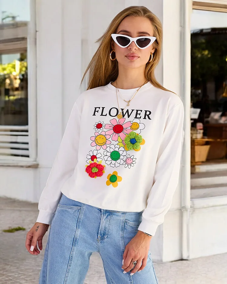- Ajoutez du style à vos tenues avec notre sweat-shirt à imprimé fin embelli. Insérable par-dessus la tête, avec une encolure ronde et des manches longues. Parfait pour tous les jours lorsque vous voulez vous sentir décontractée mais élégante !