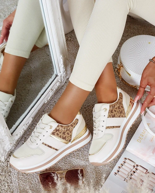- Chaussures de sport pour femmes à la mode, composées d'une combinaison de cuir écologique et de tissu. Semelle intérieure en tissu souple. Chaussures à enfiler. Elles seront une excellente décoration pour le style de tous les jours.