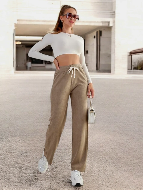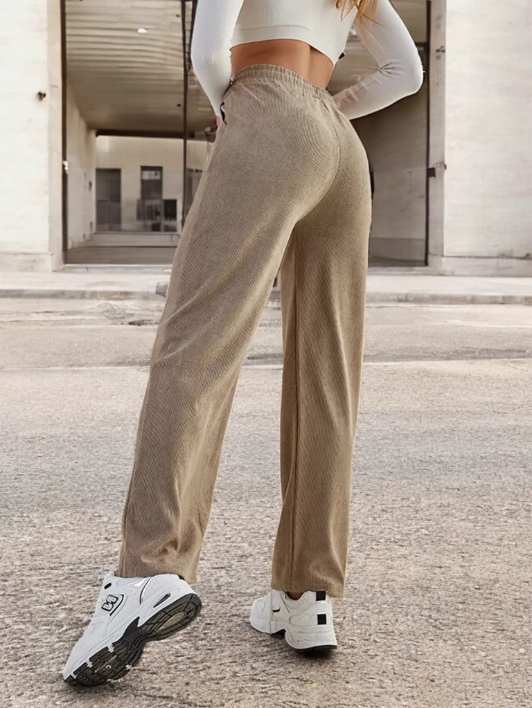 • Pantalon large sensationnel en tissu léger, le modèle est doté d'un élastique et d'un lien à la taille. Modèle côtelé. Indispensable dans votre garde-robe ! NOTE : Précision des mesures (+/-) 1 cm.