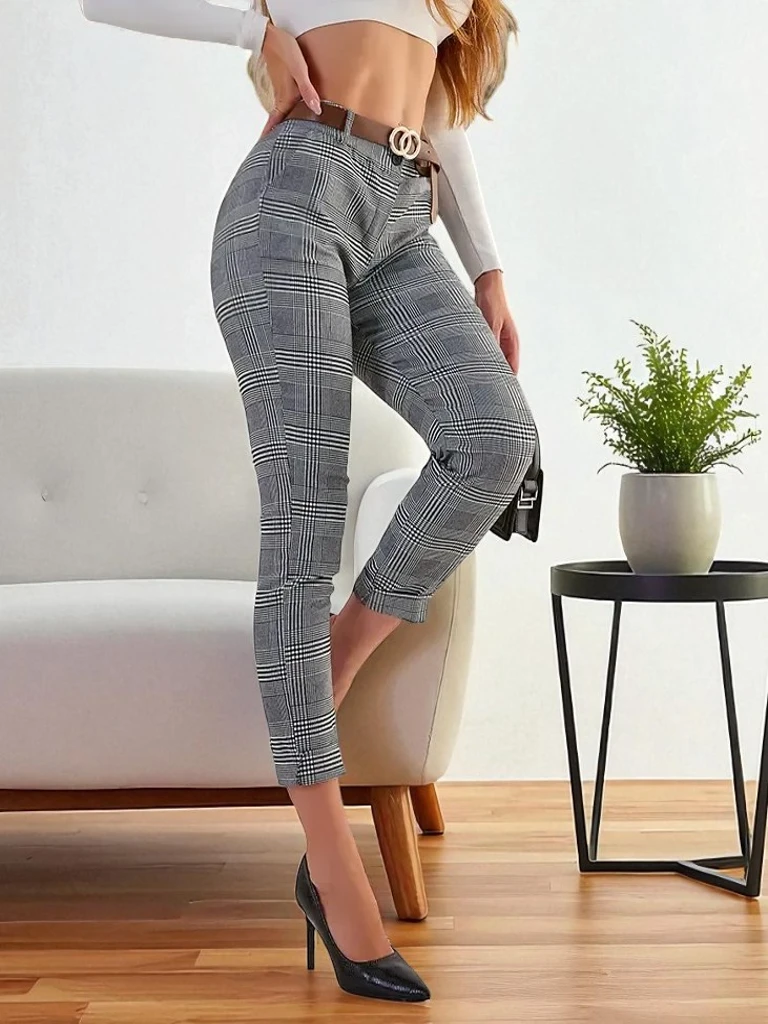 - Pantalon élégant en tissu léger avec imprimé décoratif. Le modèle se ferme à l'aide d'une fermeture éclair et d'un bouton, et possède deux poches. En outre, une ceinture est incluse. Confortable et pratique ! NOTE : Précision des mesures (+/-) 1 cm.
