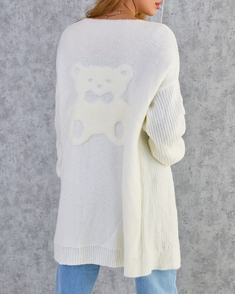 - Magnifique pull couvre-lit femme, en tricot agréable. Dans le dos se trouve un ours en peluche décoratif. Indispensable à votre garde-robe pour compléter votre style d'automne ! NOTE : Précision des mesures (+/-) 1 cm.