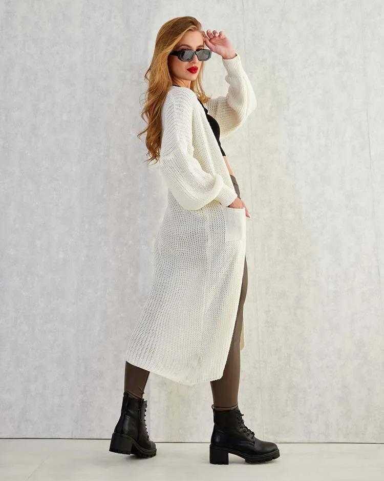 - Magnifique pull couvre-lit pour femme, en matière tricotée agréable. Cardigan avec 2 poches. Indispensable à votre garde-robe pour compléter votre style d'automne ! NOTE : Précision des mesures (+/-) 1 cm.