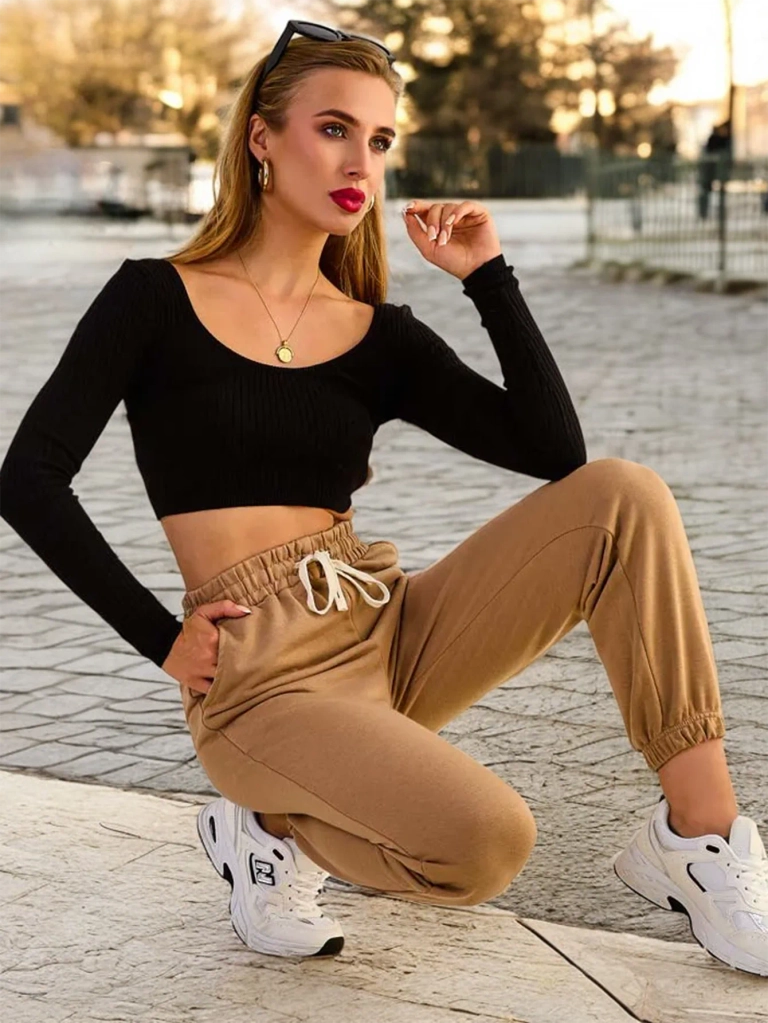 - Pantalon de survêtement classique en tissu doux et léger. La large ceinture élastique permet d'ajuster le pantalon à la forme de chacun. En outre, deux poches à glissière sur le devant.