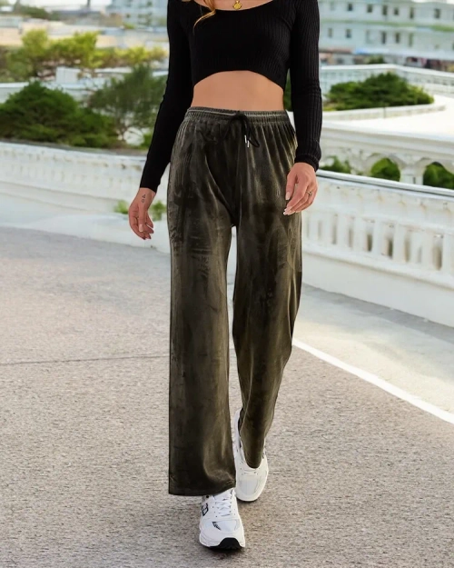 - Pantalon de survêtement femme intemporel, en matière douce a'la velour. Modèle à la coupe simple, doté de deux poches à glissière et d'une ceinture et d'un pantalon élastiques. Un choix idéal pour tous les jours !