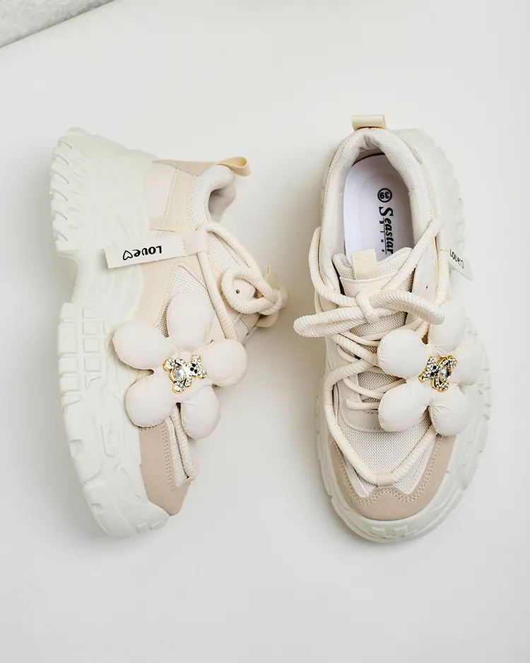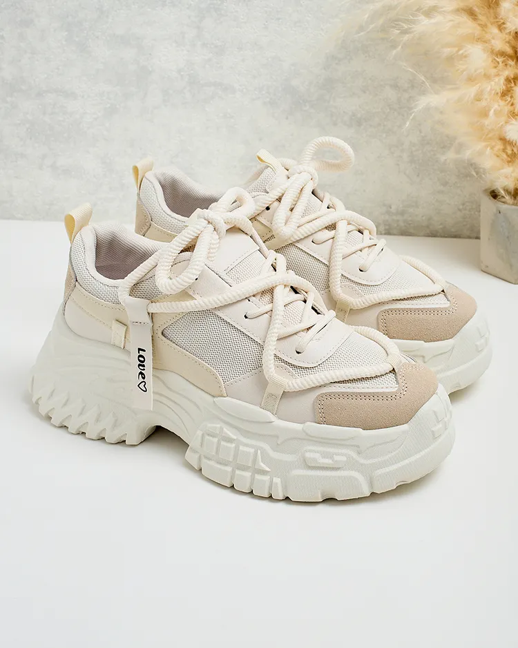 • Chaussures de sport à plateforme pour femmes. Fabriquées en cuir et tissu écologiques. Superbe complément à vos tenues décontractées !