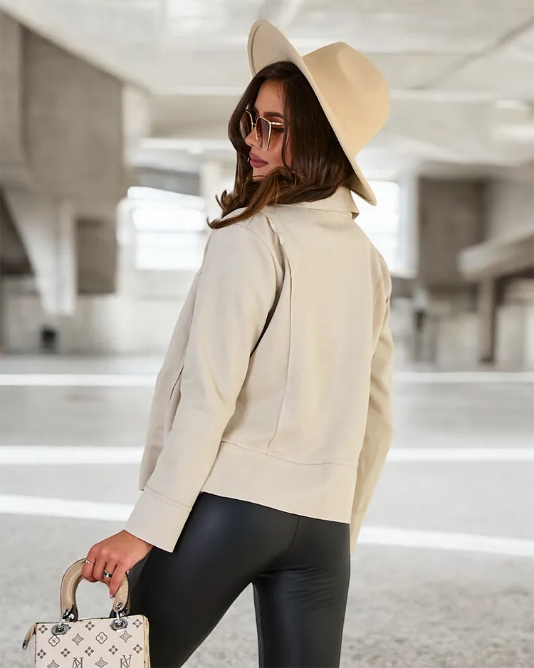 - Veste en peau de bélier intemporelle pour femme, en peau de bélier éco-suède douce - le choix parfait pour l'automne ! Modèle à fermeture éclair, avec deux poches zippées sur les côtés. REMARQUE : précision des mesures (+/-) 1 cm.