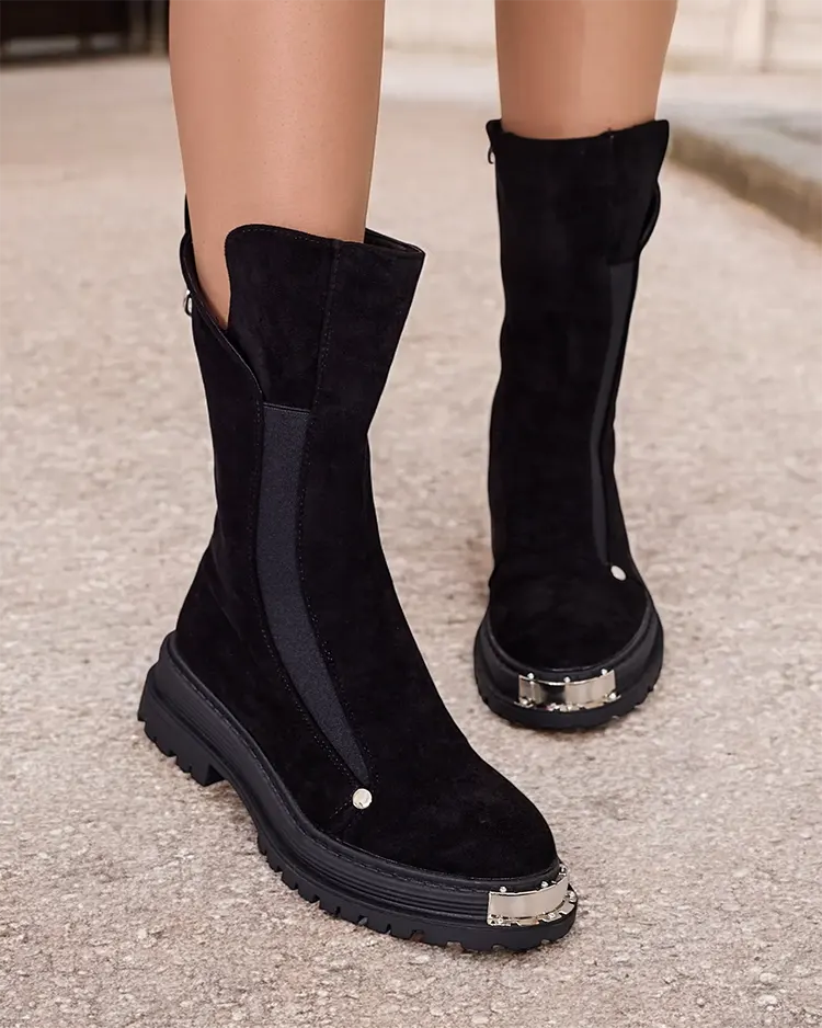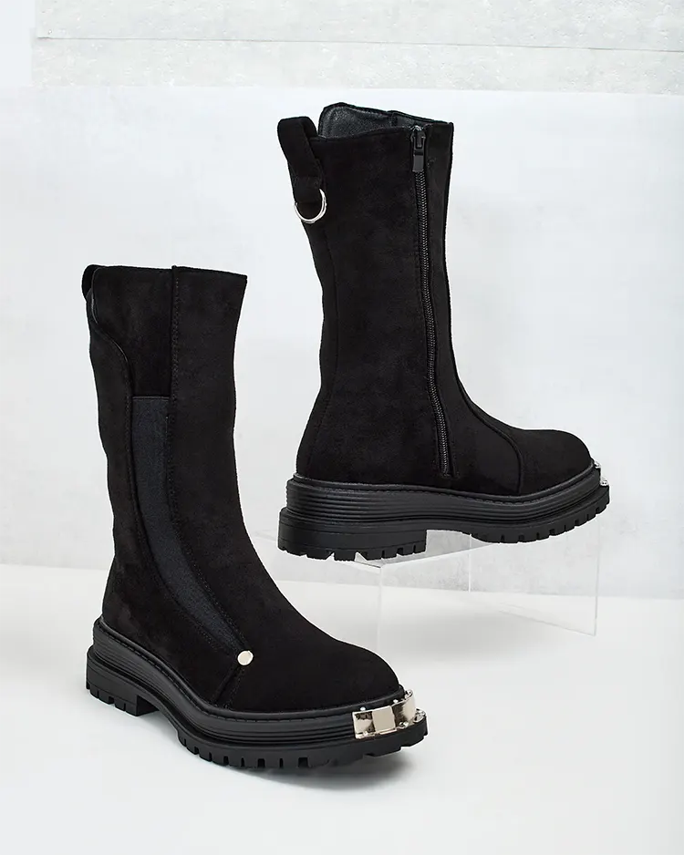 - Bottes hautes pour femme à semelle plate, en éco-daim. Intérieur doublé de fourrure douce, modèle à fermeture éclair. Idéales pour l'automne !