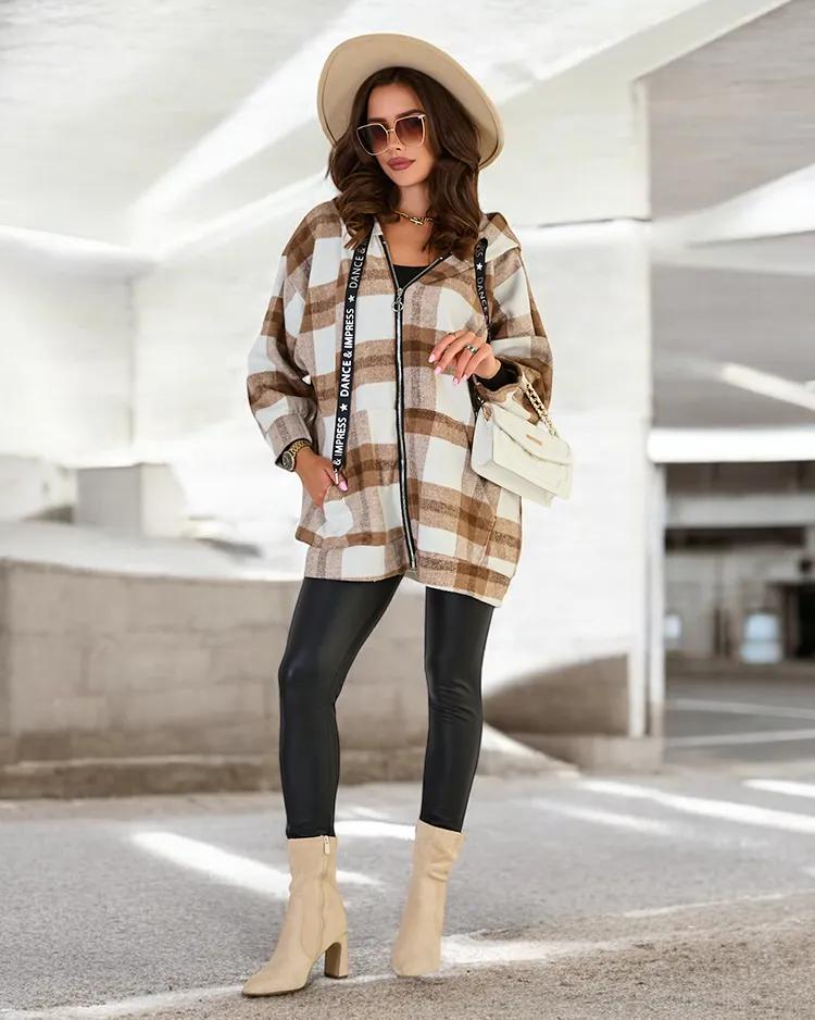 - Manteau de type chemise pour femme avec capuche. Manches longues, fermeture à glissière et 2 poches. Idéal pour l'automne !
