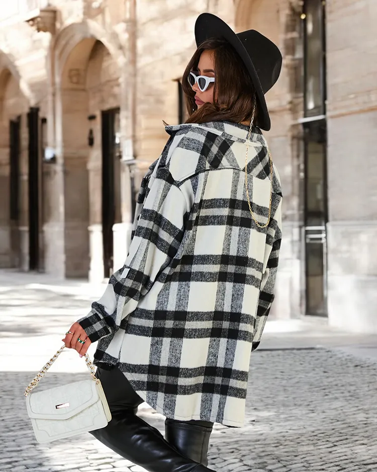 - Manteau chemise élégant pour femme avec fermeture à boutons. Le manteau de taille supérieure a des manches longues et 2 poches. Idéal pour l'automne !