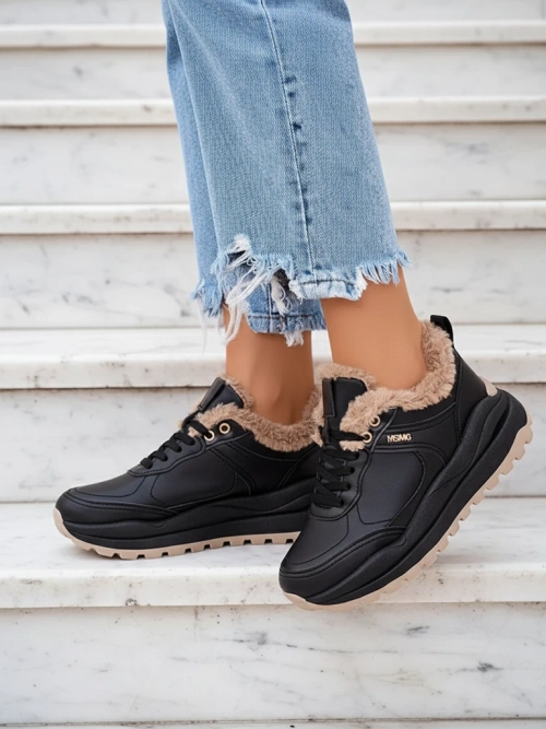 - Chaussures de sport isolées pour femme sur une semelle plus épaisse. Dessus lacé en cuir écologique. Intérieur en fourrure douce. Super complément à vos tenues décontractées d'hiver !