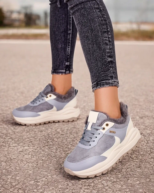 - Chaussures de sport isolées de type sneaker pour femme sur une semelle plus épaisse. Tige à lacets en nubuck écologique combiné à du cuir écologique. Intérieur en fourrure douce. Super complément à vos tenues décontractées d'hiver !