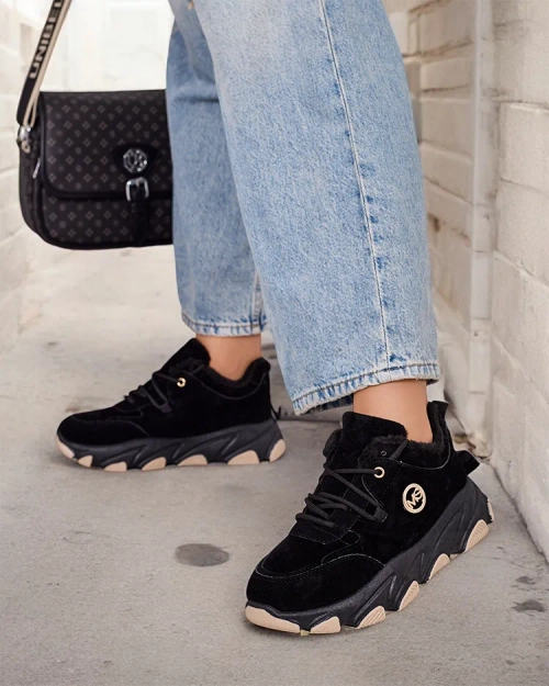 • Chaussures de sport isolées pour femme sur une semelle plus épaisse. Tige à lacets en nubuck écologique. Intérieur en fourrure douce. Super complément à vos tenues décontractées d'hiver !