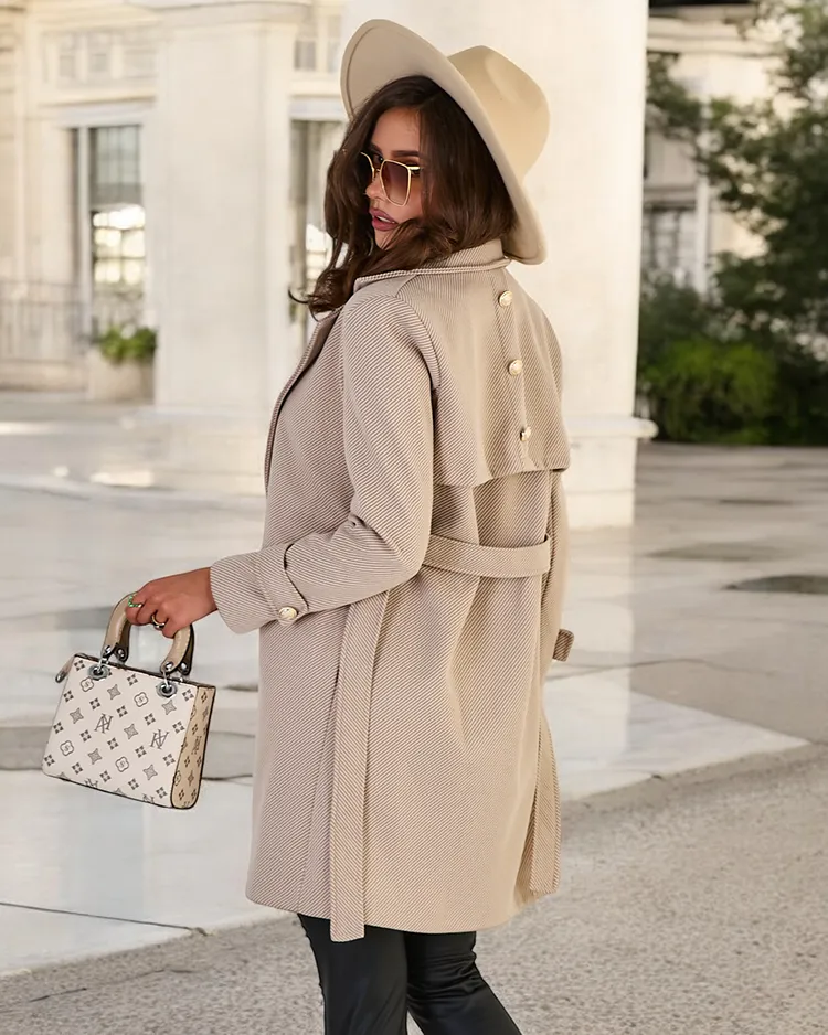 - Un manteau intemporel pour femme, longueur genou, avec une ceinture tiercée à la taille. Le modèle a des manches longues et une fermeture à boutons. Il est doublé. Un choix parfait pour l'automne ! NOTE : Précision des mesures (+/-) 1 cm. Dimensions mesur