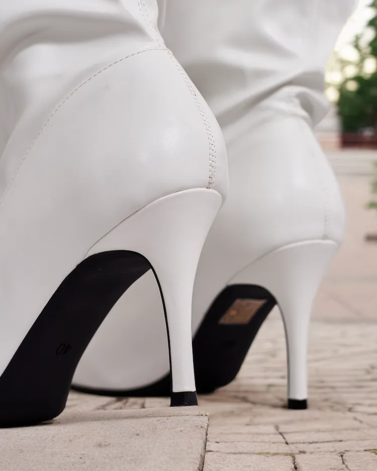 - Bottes courtes à talon aiguille pour femme avec nez aiguille. Fabriquées en cuir écologique, semelle intérieure en cuir écologique. Modèle à enfiler, avec une trépointe sur le dessus de la tige. Un choix parfait pour l'automne !