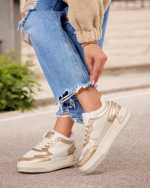 - Chaussures de sport isolées pour femme sur une semelle plus épaisse. Tige à lacets en cuir éco et éco-suède. Intérieur en fourrure douce. Super complément à vos tenues décontractées d'hiver !