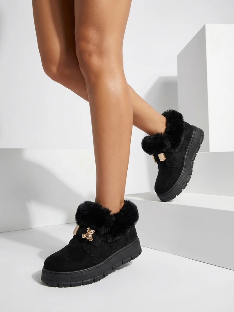 • Superbes bottes de neige à plateforme pour femmes en hiver. La tige est en cuir suédé écologique, le milieu est isolé avec de la fourrure. La chaussure est ornée d'une décoration subtile sur la tige. La base parfaite pour l'hiver !