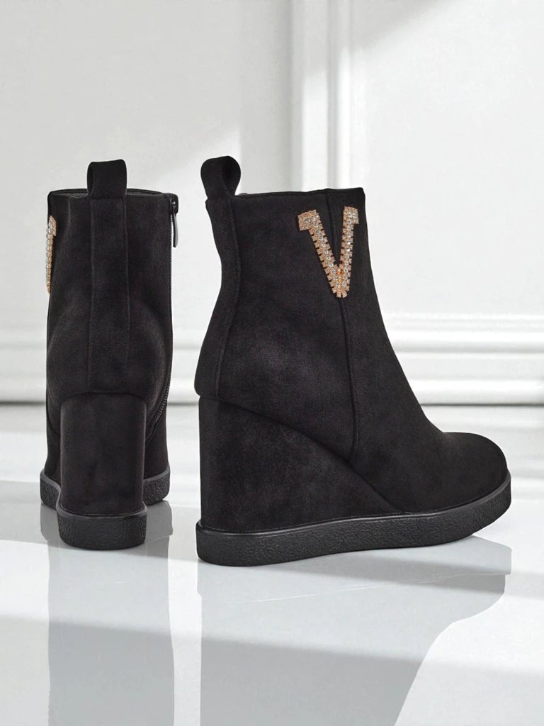 - Bottes à talons élégantes pour femmes, en éco-suède. Chaussures garnies de fourrure à l'intérieur. Un choix parfait pour l'automne !