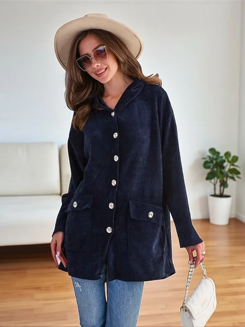 - Mettez en valeur votre style avec un agréable et fin gilet qui enchante par sa délicatesse et son élégance. De grands boutons dorés lui ajoutent un caractère raffiné. Le modèle comporte une capuche et 2 poches. Associez-le à votre pantalon préféré !