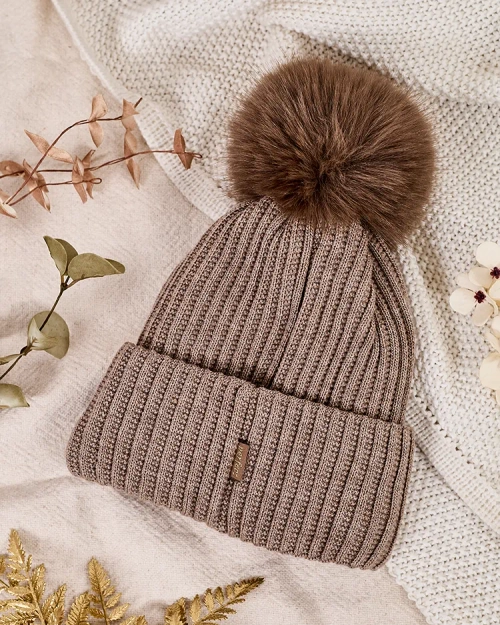 - Belle casquette d'hiver isolante pour femme en tissu tricoté. Modèle avec doublure polaire douce, ornée d'un pompon moelleux. Parfait pour les jours froids et hivernaux !
